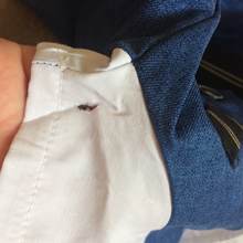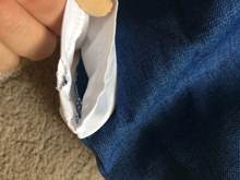 The suit is super!! odorless, all buttons work, the tie is unfastened. the material is of good quality.
